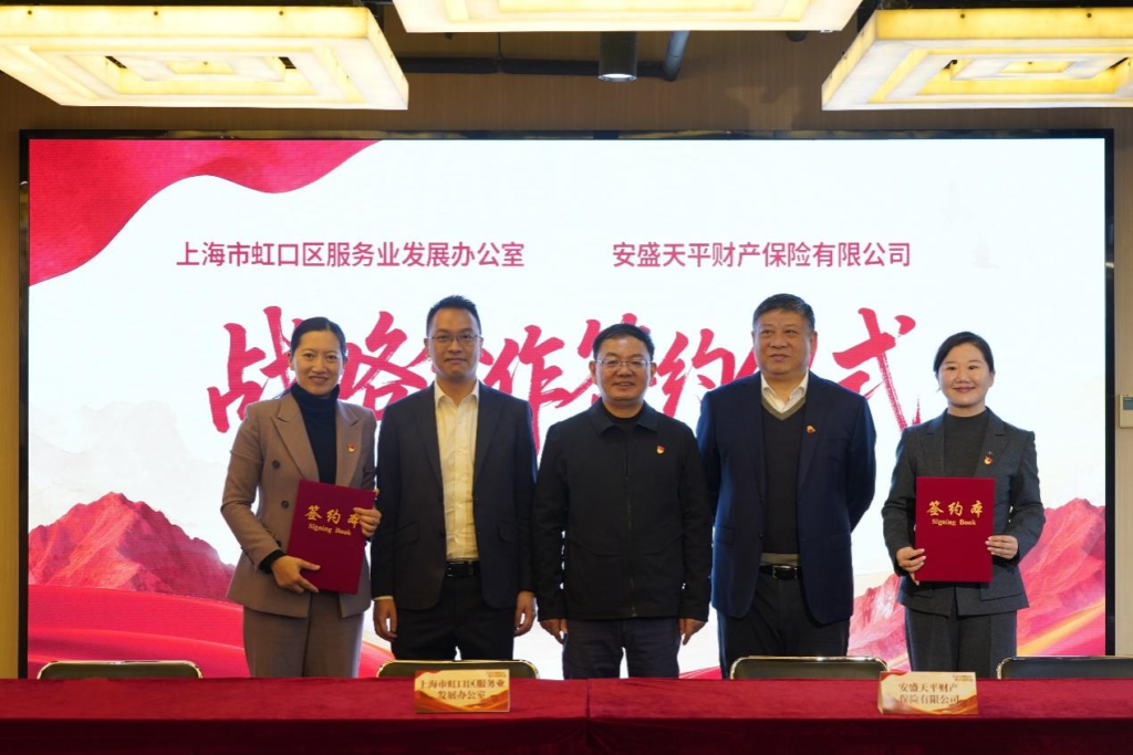 活动的高潮环节为战略合作签约仪式。在李骥、左伟豪、王都富的共同见证下,虹口区服务业发展办公室副主任曹洁与安盛天平财产保险有限公司首席市场营销官戴思远分别代表双方签署战略合作协议,标志着双方合作进入新阶段,更成为安盛扎根中国、持续深耕的又一重要里程碑。
