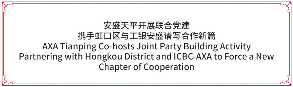 This activity used Party building as a bond to effectively gather consensus among multiple parties and enhance organizational synergy. It is an important practice for AXA Tianping in implementing “Finance for Good” and promoting the integration of Party building with business operations. It further demonstrates the company’s firm determination to lead development through Party building and create value through cooperation. In the future, AXA Tianping will take this joint building as an opportunity to continuously deepen collaboration with local governments, ICBC-AXA, ICBC, and other enterprises. Through joint organization building, joint activities, and resource sharing, the company will continuously explore new pathways for high-quality development led by Party building.